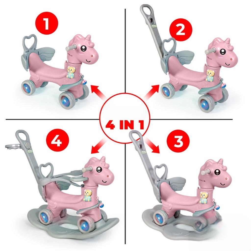 Mainan Kuda-Kudaan ini memiliki berbagai macam mode berbeda yang dapat digunakan. Mode pertama yaitu mode dorong, mode roda, dan mode goyang. Dilengkapi dengan berbagai macam fitur menarik untuk menambah keceriaan anak saat menggunakan rocking horse ini.
